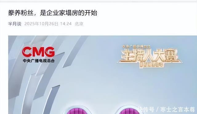 10月26日,被誉为“中华第一刊”的党刊《半月谈》,发布了一篇文章。 标题名称为《豢养粉丝,是企业家塌房的开始》。 毫不避讳的怒批,某些热衷于饭圈流量的企业家。